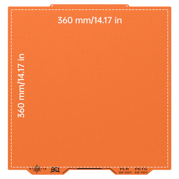 | Size: No selection | 235mm*235mm(For Ender 3/Ender 3 V2/Ender 3 Pro/Ender 3S/CR20/Ender 5), 250mm*210mm(For PRUSA MK4/MK4S/MK3/MK3S/CORE One/CORE One+), 250mm*250mm(For Anycubic Kobra 3), 254.5mm*241.5mm(For PRUSA MK4/MK3/MK3S), 300mm*300mm(For Voron 300), 310mm*315mm(For K1 Max/Ender-3 V3 PLUS/Ender-3 S1 PLUS), 356mm*356mm(For Voron 350), 360mm*360mm(For PRUSA XL) |