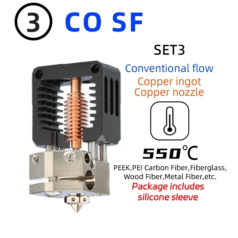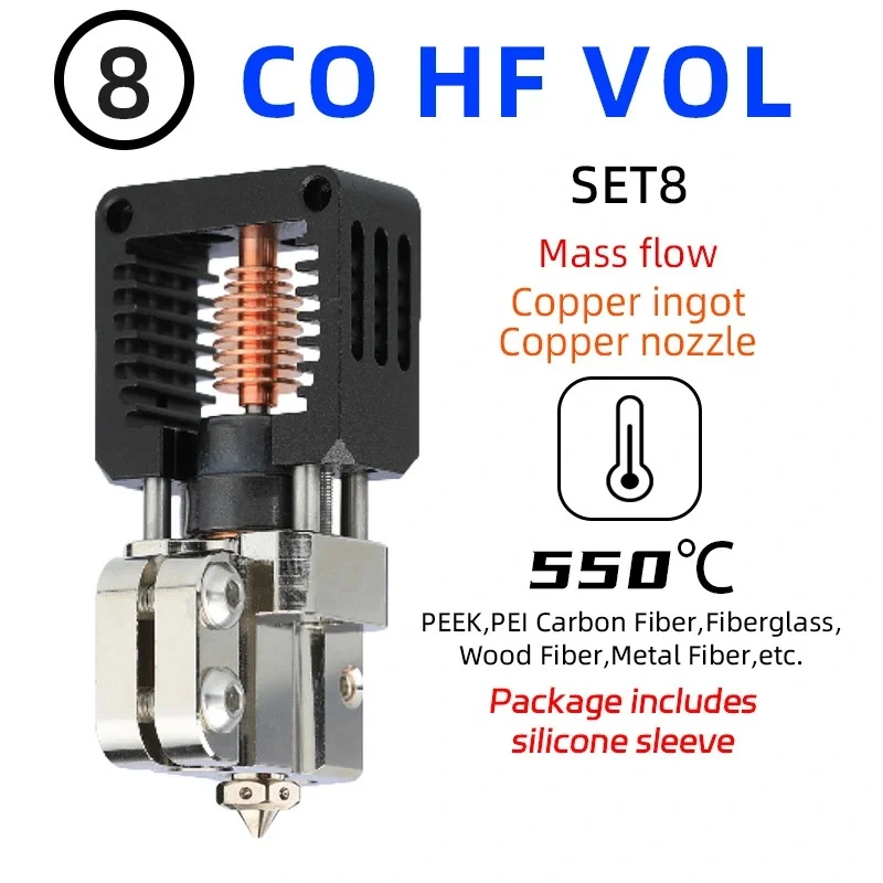 HF is a Magnum version similar to the volcano hot end, suitable for large flow nozzles such as 0.6MM-0.8MM, Support for faster printing