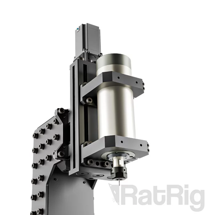 If you are a heavy-duty user, you can choose the Advanced Electronics Bundle which features a Full size 2.2KW / 80mm spindle and VFD, for a no compromises experience. For lighter work, you can choose the basic electronics bundle for a sub 1000€ fully capable mill. The super rigid Rat Rig Spindle mount, made from aluminum and available in various diameters, opens the possibility of working with a wide range of tools and materials with ease and efficiency.