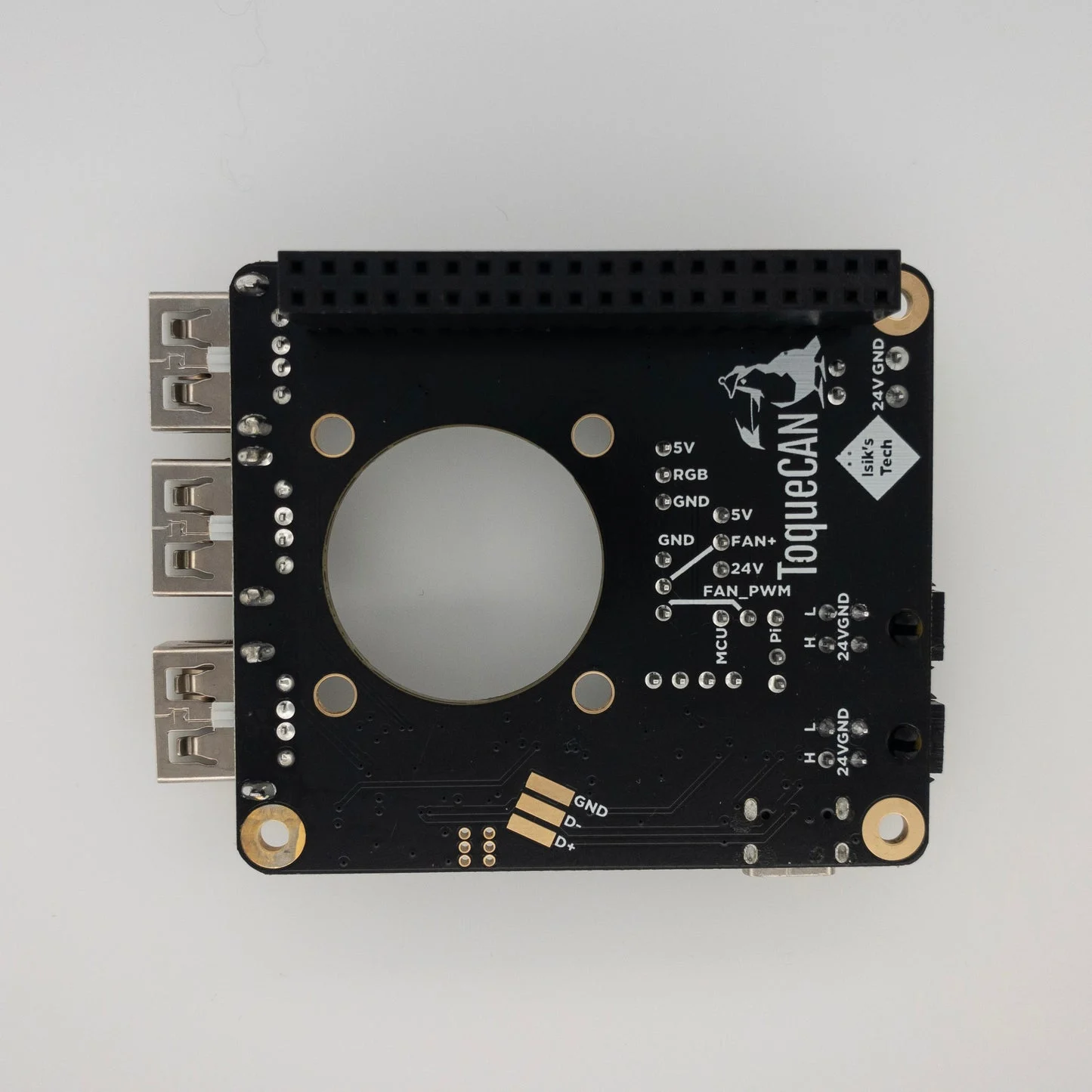 | ToqueCAN is open-source hardware. The source files, gerbers, BOM, 3D CAD models, STLs for fan mounts, manual and more can be found on its GitHub repo.