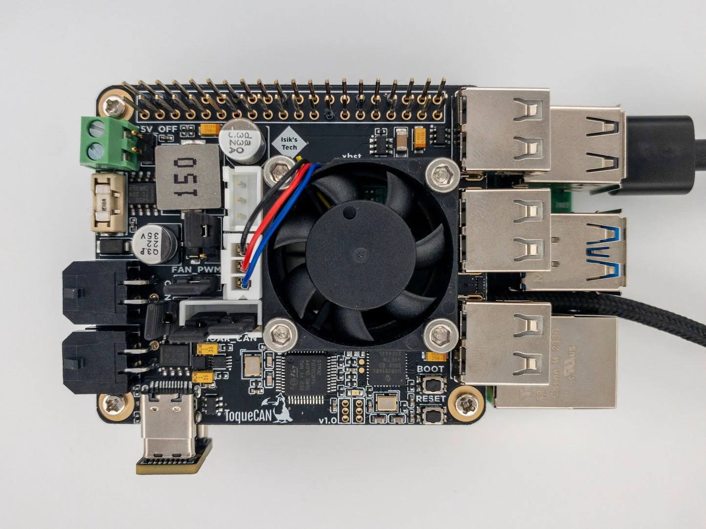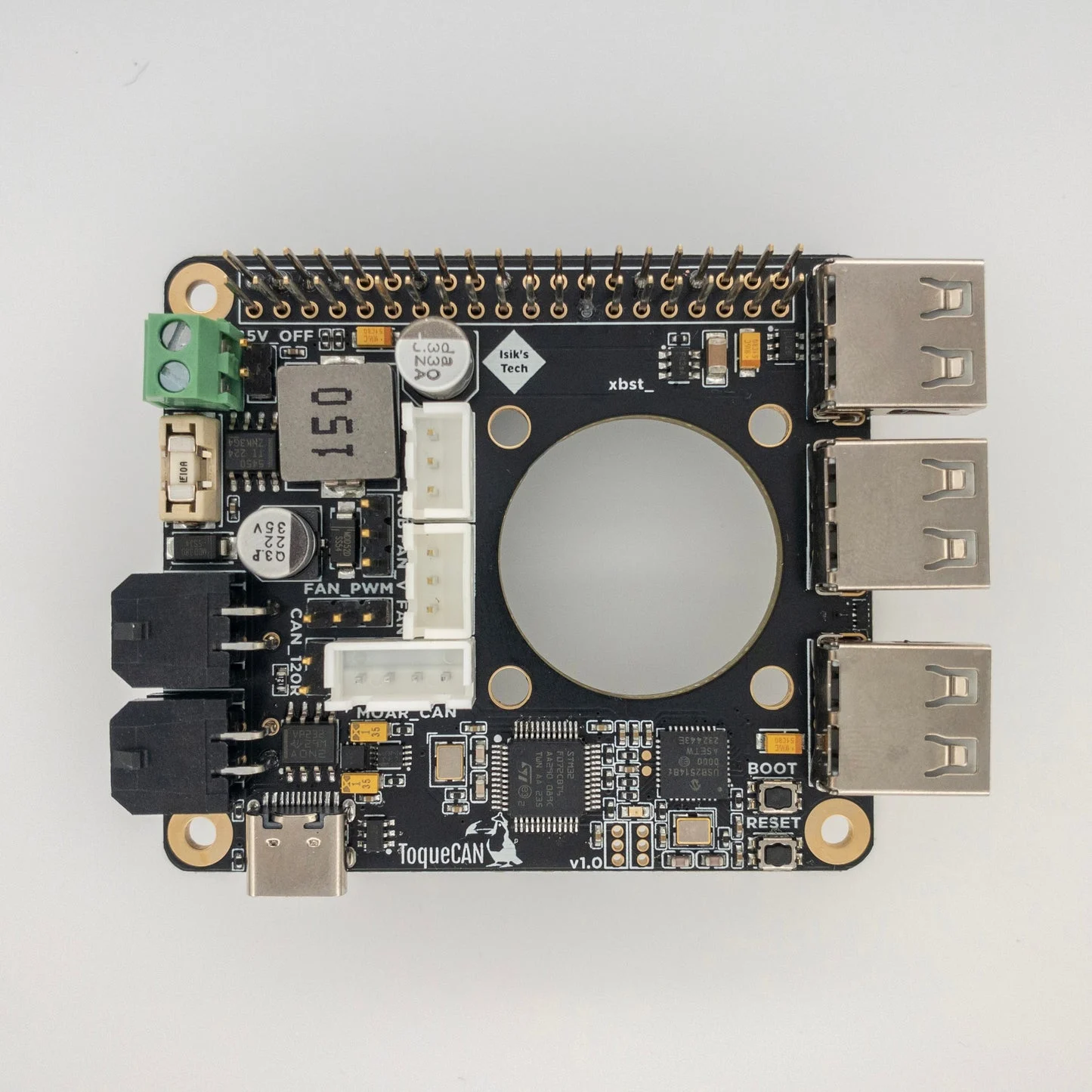 ToqueCAN is an open-source Raspberry Pi toque* with: